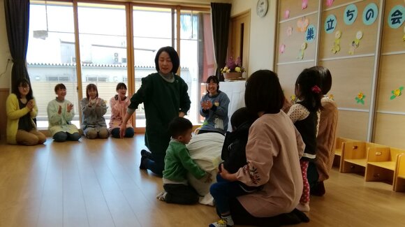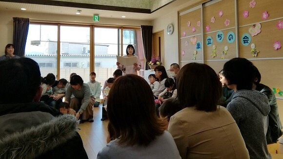 当保育園は昨年4月に下諏訪町初の認可保育園として開園し(3才未満児15人定員、うち地域枠4人)、この度初の巣立ちの会(卒園式)を迎えました。園児数は年度途中では定員を超過し(定員の120%の18人まで可)、18人となりましたが、この年度末では17人中6人が巣立っていきました。