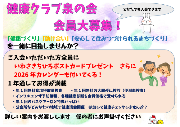- 健康クラブ泉の会 会員募集中 年会費一世帯 1,000円