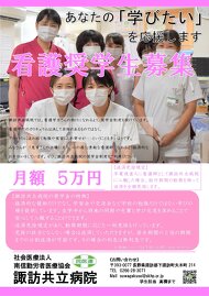 諏訪共立病院では、看護学生の手助けになれるよう奨学金制度を設けています。