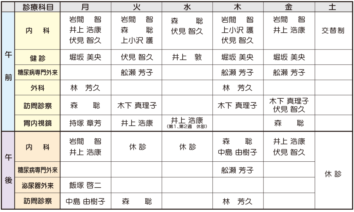 ※2025年7月から水曜日午後の下部内視鏡検査が終了となりました。